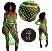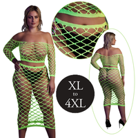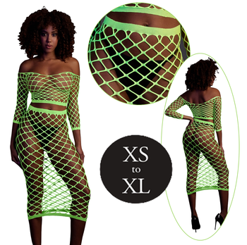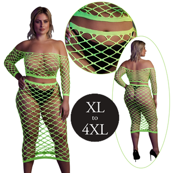 Fluorescencyjny, świecący, dwucześciowy kostium - krótki top z długim rękawem + długa sukienka, neonowa zieleń rozmiar XL/XXXXL
