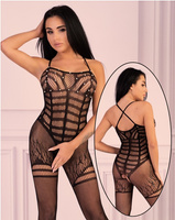 Siatkowy kostium, koronkowy bodystocking, dekoltem wiązanym na szyi, z odkrytym kroczem i pupą, połączone z pończochami, ONE SIZE S-XL