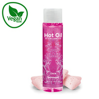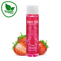 Olejek do masażu i gry wstępnej, smak TRUSKAWKA, zawiera ekstrakt z żeń-szenia, efekt HOT rozgrzewający, jadalny, bez cukru, bez glutenu, 100% wegański, 100 ml