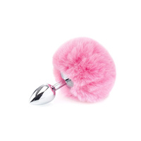 Metalowy korek analny z różowym, króliczym ogonkiem