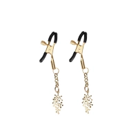 Złote, regulowane klamerki na sutki, z wisiorkami w kształcie liści – 2 sztuki