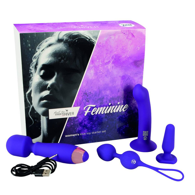 Ten zestaw startowy akcesoriów erotycznych został skomponowany z myślą o kobietach, które chcą w przyjazny sposób poznać różne formy stymulacji i pielęgnować własną przyjemność. Podarowany w prezencie zachwyci każdą poszukiwaczkę nowych doznań. Składa się z czterech akcesoriów wysokiej jakości, które są przyjazne dla początkujących, łatwe w obsłudze i wykonane z bezpiecznych materiałów. To sprawia, że pierwszy kontakt z zabawkami intymnymi staje się komfortowy i ekscytujący. Zestaw doskonale sprawdzi się jako prezent lub inspiracja do samodzielnej eksploracji własnych doznań. W zestawie znajdują się: masażer typu wand, czyli różdżka z wibracjami, mały korek analny, podwójne kulki gejszy do treningu mięśni Kegla i dildo z przyssawką.