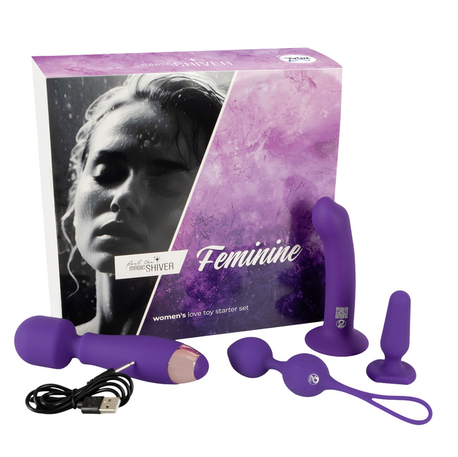 Ten zestaw startowy akcesoriów erotycznych został skomponowany z myślą o kobietach, które chcą w przyjazny sposób poznać różne formy stymulacji i pielęgnować własną przyjemność. Podarowany w prezencie zachwyci każdą poszukiwaczkę nowych doznań. Składa się z czterech akcesoriów wysokiej jakości, które są przyjazne dla początkujących, łatwe w obsłudze i wykonane z bezpiecznych materiałów. To sprawia, że pierwszy kontakt z zabawkami intymnymi staje się komfortowy i ekscytujący. Zestaw doskonale sprawdzi się jako prezent lub inspiracja do samodzielnej eksploracji własnych doznań. W zestawie znajdują się: masażer typu wand, czyli różdżka z wibracjami, mały korek analny, podwójne kulki gejszy do treningu mięśni Kegla i dildo z przyssawką.