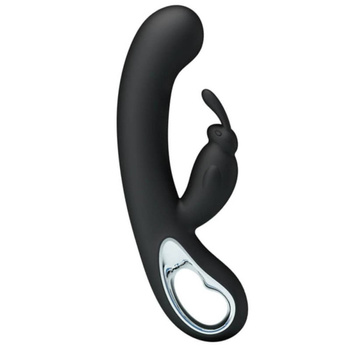 Ten wyjątkowo elegancki wibrator ma moc spełniania najskrytszych, najbardziej niegrzecznych pragnień. Został zaprojektowany, aby obudzić fantazje i zaspokoić umysł, ciało i duszę, dlatego jest idealny zarówno do zabaw solo, jak i w parze. Wyposażony jest w dwa niezależne od siebie silniczki, dzięki czemu można samemu decydować, w którym miejscu chce się odczuwać największą przyjemność. Jeśli zaprosi się go do swojego życia erotycznego, już nigdy nie zechce się z niego zrezygnować. Ten intensywnie czarny wibrator do stymulacji punktu G, z końcówką do pieszczot łechtaczki w kształcie króliczka, to bilet do krainy rozkoszy.